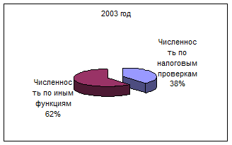 Для проведения налоговых проверок в штате Инспекции предусмотрены штатные единицы, в основные обязанности которых входит осуществление налоговых проверок. Анализируя изменения численного состава Инспекции, можно отметить, что в 2004 году по отношению к 2003 году общая численность инспекции увеличилась на 5 человек, причем численность работников, осуществляющих налоговые проверки увеличилась на 3 человека, а численность работников, осуществляющих иные функции увеличилась на 2 человека. Темп роста работников по налоговым проверкам (106,0%) превышает темп роста других работников (102,5%) на 3,5% (106,0-102,5).