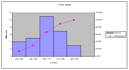 Для проведения автоматизированного статистического анализа совокупности выборочные данные представлены в формате электронных таблиц процессора Excel в диапазоне ячеек B4:C35.