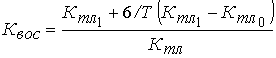Коэффициент восстановления платежеспособности Квос определяется как отношение расчетного коэффициента текущей ликвидности к его нормативу. Расчетный коэффициент текущей ликвидности определяется как сумма фактического значения коэффициента текущей ликвидности на конец отчетного периода и изменения значения этого коэффициента между окончанием и началом отчетного периода в пересчете на период восстановления платежеспособности, установленный равным шести месяцам: