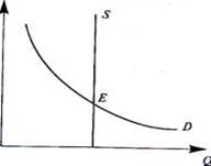 Можно повысить производительность земли, улучшить ее качество, можно повысить или понизить до минимума плату за землю, но количество совокупного предложения этого фактора производства в каждый фиксированный момент времени увеличить невозможно. Графически кривая предложения земли имеет вид абсолютно вертикальной линии, а график формирования цен и установления равновесия будет отличаться от привычного нам вида «маршаллианского креста» — скрещивания кривых спроса и предложения (рис. 7.2).