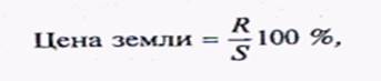 где R — рента; S — ссудный процент. В экономической теории все, что приносит доход, рассматривается как капитал. Определенную сумму можно положить в банк и получать доход в виде процента, а можно потратить эти деньги на покупку земли и получать ренту.
