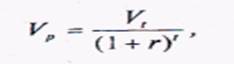 где Vp, V, — соответственно сегодняшняя и будущая стоимости будущей суммы денег; / — число лет; г — ставка процента в десятичных дробях.