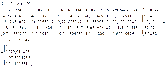 . Обозначим Х – вектор валового выпуска, Y – вектор конечного продута, А = (аij) – матрица прямых затрат, (i, j = 1, 2, ... п). Тогда соотношения баланса перепишутся в матричном виде:
