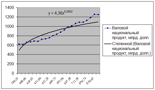 2. С помощью пакета Excel найдем расчетные значения ВНП: