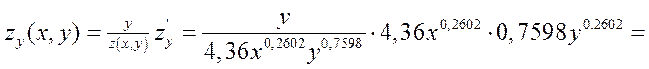 4. Оценим эластичность производственной функции по объему загруженного капитала и количеству отработанных часов, т.е. эластичность функции z по переменной х и эластичность функции z по переменной у.