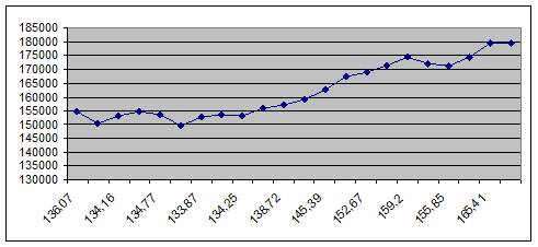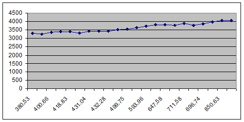Как можно видеть из табличных значений и графического представления, расчетные значения, по крайней мере, повторяют тенденцию фактических значений с ошибкой порядка ±7%.