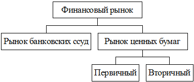 Рынок ценных бумаг входит как элемент в систему финансового рынка и, в свою очередь, подразделяется на первичный и вторичный, а вторичный – на биржевой и внебиржевой (рис. 1).