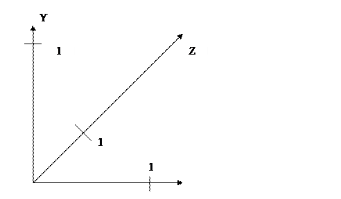 В отличие от предыдущего задания, где трёхмерные координаты преобразуются в двухмерные с перспективой, здесь указан тип проекции – диметрия. Такая проекция имеет два масштаба: оси X и Y с из глобальной системы координат переходят в экранную с масштабом 1:1, а ось Z переходит в наклонную прямую, располагающуюся под углом 45 с масштабом 0,5:1. Название «диметрия» как раз и обозначает «два масштаба». Заметим сразу, что положительное направление глобальной координаты Zг отображается на экранные координаты X э и Y э (рис. 1) с масштабом 0,5*cos 45˚ = 0,5*0,707[4].