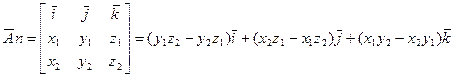 Для определения координат нормального к поверхности вектора используем векторное произведение[5]: