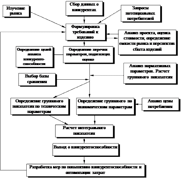 Независимо от целей исследования, основой оценки конкурентоспособности является изучение рыночных условий, которое должно проводиться постоянно, как до начала разработки новой промышленной продукции, так и в ходе ее реализации.