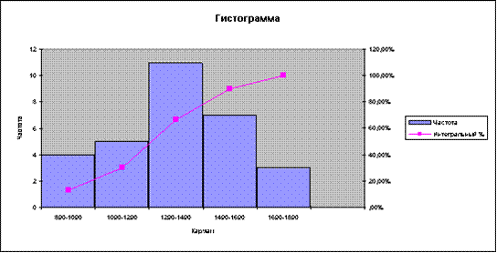 Интервал с наибольшими значениями данного показателя – от 1265 до 1415 млн.руб. Удельный вес предприятий с указанными значениями составляет 100%. Это следующие 3 предприятия: №12 – 1287,5 млн.руб., №16 – 1415 млн.руб., №21 – 1317,5 млн.руб.