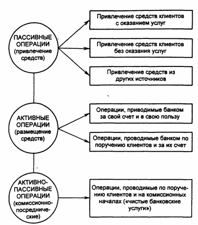 Банк в процессе своей деятельности совершает определенные операции и сделки, направленные на удовлетворение потребностей клиентов в банковских услугах и обеспечение своей деятельности как хозяйствующего субъекта. Операции банка можно разделить на кредитные (связанные с привлечением и размещением свободных денежных средств) и комиссионно-посреднические, в которых банки выполняют исключительно брокерскую функцию.