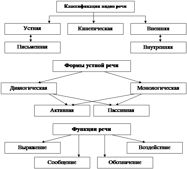 Речь человека весьма многообразна и имеет разнообразные формы. Однако какую бы форму речи мы ни использовали, она будет относиться к одному из двух основных видов речи: устной или письменной (рис. 3). При этом оба вида имеют определенное сходство. Оно заключается в том, что в современных языках письменная речь, как и устная, является звуковой: знаки письменной речи выражают не непосредственное значение, а передают звуковой состав слов.