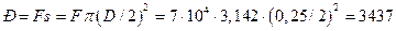 Поршень диаметром D1 = 130 мм, нагруженный силой 70000 H с учетом механических потерь, создает давление