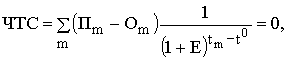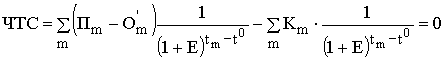 Важнейшим показателем эффективности инвестиционного проекта является чистая текущая стоимость (другие названия ЧТС – интегральный экономический эффект, чистая текущая приведенная стоимость, чистый дисконтированный доход, Net Present Value, NPV) - накопленный дисконтированный эффект за расчетный период. ЧТС рассчитывается по следующей формуле: