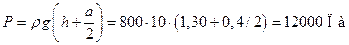Решение: Сила давления на плоскую вертикальную стенку равна произведению давления в геометрическом центре на площадь поверхности. Геометрический центр крышки находится от поверхности жидкости на расстоянии h + a/2. Давление керосина на этой глубине