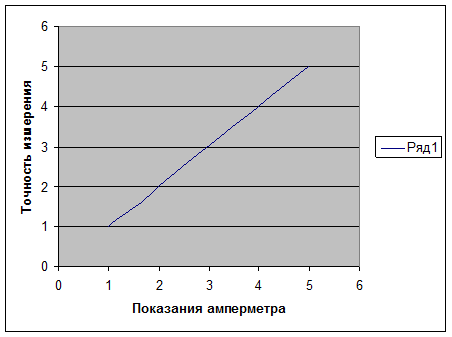 График зависимости точности измерения от показаний амперметра: