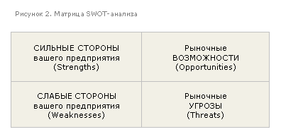 Для того чтобы получить ясную оценку сил вашего предприятия и ситуации на рынке, существует SWOT-анализ.