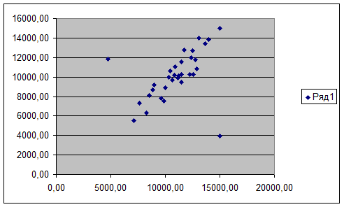 Аналогично, с вероятностью 0,954 средняя стоимость основных фондов колеблется от 10991,3321044 млн. руб. до 12508,6678956 млн. руб., а с вероятностью 0,997 – от 9884,357392 млн. руб. до 12215,642608 млн. руб. Средний выпуск продукции колеблется с вероятностью 0,954 от 10051,3743454 млн. руб. до 11861,4256546 млн. руб., а с вероятностью 0,997 – от 8870,776881 млн. руб. до 11737,689779 млн. руб.