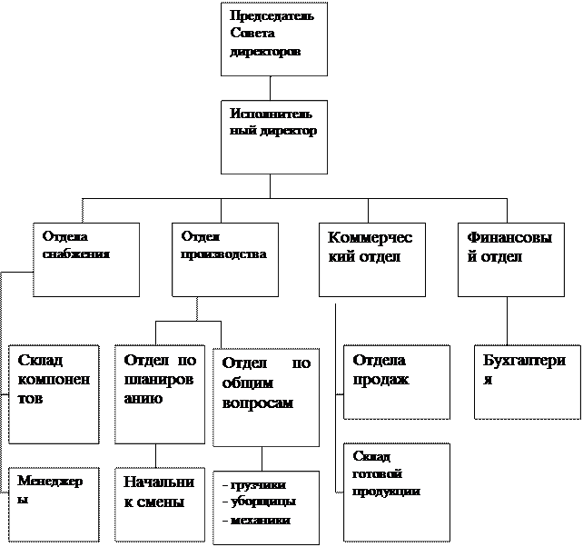 Организационная структура управления предприятием является линейной, так как составляет так называемый "шахтный" принцип построения и специализация управленческого процесса по функциональным подсистемам организации (маркетинг, производство, исследования и разработки, финансы, персонал и т. д.). По каждой подсистеме формируется иерархия служб ("шахта"), пронизывающая всю организацию сверху донизу.