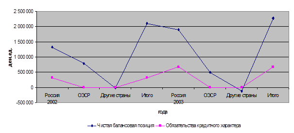 В географическом анализе чистая балансовая позиция в России в 2003 г. увеличилась на 573 482 ден.ед., и составила 1 901 201 ден.ед., что на 143% выше уровня 2002 г. Чистая балансовая позиция в ОЭСР в 2003 г. снизилась на 290 984 ден.ед., и составила 492 789 ден.ед., что составляет 63% уровня 2002 г.