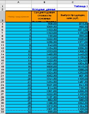 При проведении статистического наблюдения за деятельностью предприятий корпорации получены выборочные данные по 32-м предприятиям, выпускающим однородную продукцию (выборка 10%-ная, механическая), о среднегодовой стоимости основных производственных фондов и о выпуске продукции за год.