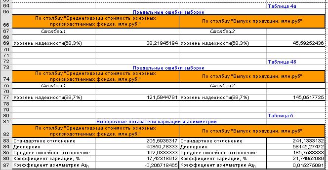 Задача 2. Рассчитанные выборочные показатели представлены в двух таблицах - табл.3 и табл.5. На основе этих таблиц необходимо сформировать единую таблицу (табл.8) значений выборочных показателей, перечисленных в условии Задачи 2.