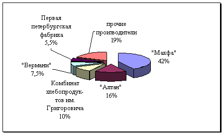 Характерной особенностью данного рынка является взаимосвязь между выпуском макаронной продукции и ее «сырья» - муки. Так, выпуск макарон был освоен многими предприятиями мукомольной отрасли, вынужденными в условиях рыночной экономики диверсифицировать свое производство.