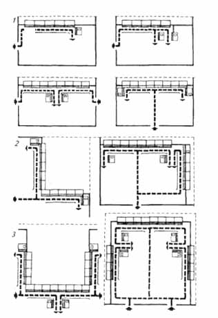 них зависит от планировки зала, мощности предприятия, интенсивности потока