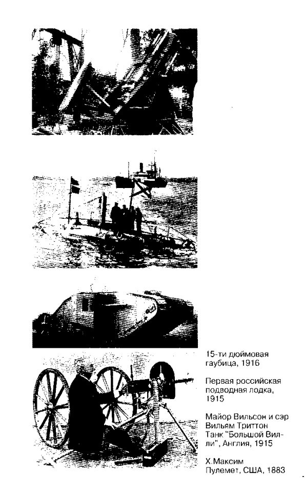 Революционными изобретениями времен зарождения промышленного производства также стали: конвейер; 15-ти дюймовая гаубица; первая российская подводная лодка; пулемет; фотокамера; телеграф; радиоприемник; телефонный аппарат; дирижабль и т.д.
