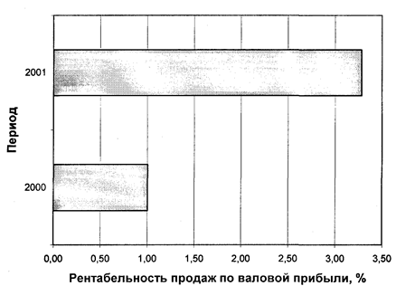 К концу анализируемого периода рентабельность продаж по валовой прибыли возрастает более, чем в три раза - это положительный факт.