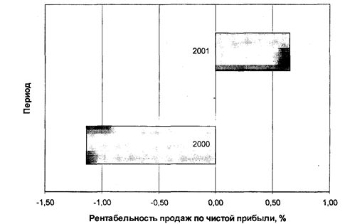 Рентабельность продаж по чистой прибыли в предыдущем году «ушла» в отрицательное значение. Это произошло потому, что в этот период предприятие сработало в убыток.