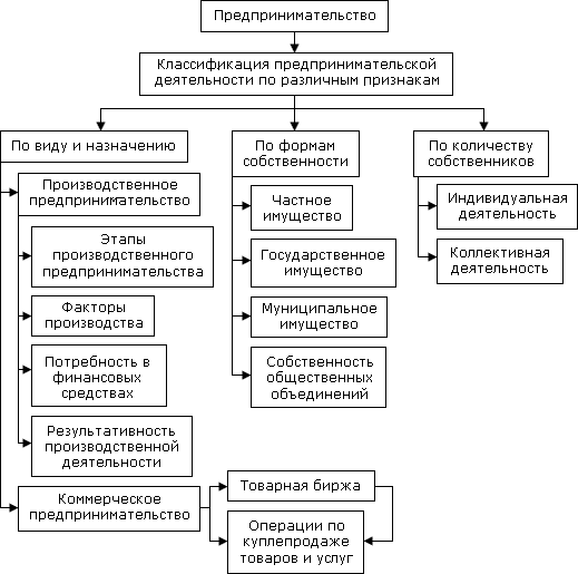 Рис. 1. Классификация предпринимательской деятельности по виду и назначению деятельности, а также по формам собственности