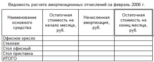 Рисунок 10. «Ведомость расчета амортизационных отчислений за январь 2006г.»