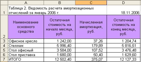 Для проведения расчета амортизации будем работать с электронной таблицей Microsoft Office Excel 2003.