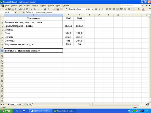Исходные данные заключительного учета заготовки кормов в Ставропольском крае в 2001 году приведены в Таблице 1.