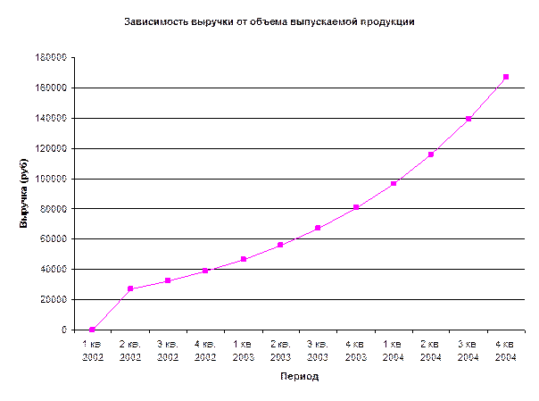 5.3. Зависимость выручки от объема выпускаемой продукции