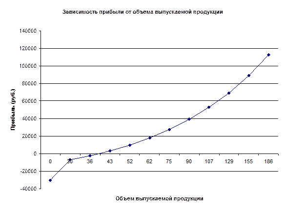 5.4. Зависимость прибыли от объема выпускаемой продукции