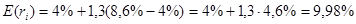 Предположим, что ставка, свободная от риска (rf) составляет 4%, рыночная премия за риск 8,6% и конкретный вид акций имеет b = 1,3. Основываясь на модели CAPM, определите ожидаемую доходность акций. Какой была бы ожидаемая доходность, если бы b удвоилась?