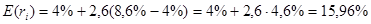 Если b удвоится, т.е. b = 2,6, то ожидаемая доходность акций будет равна:
