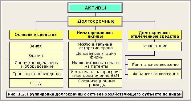 учета: долгосрочные и краткосрочные текущие активы, собственный и