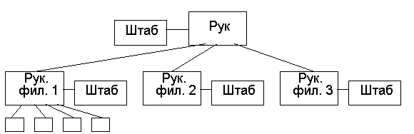 Дивизиональная (филиальная структура) изображена на рис.17. Дивизионы (филиалы) выделяются или по области деятельности или географически.