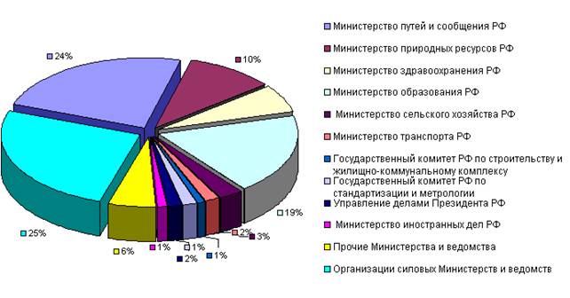 Диаграмма 2. Структура доходов, полученных от внебюджетной деятельности в разрезе Министерств и ведомств в 2004 году