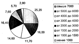 Рис. 9. Распределение доходов населения России в 1 полугодии 2004г., % (Источник: ФСГС)