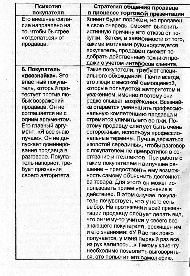 12.5. Специфика проведения торговой презентации с учетом психотипа покупателей 179