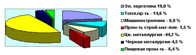 Важное место в структуре промышленности занимали гидроэнергетика, цветная металлургия, легкая и пищевая промышленность, машиностроение и топливная (угольная) промышленность. Межрайонное значение имели также черная металлургия, лесная и деревообрабатывающая промышленность.