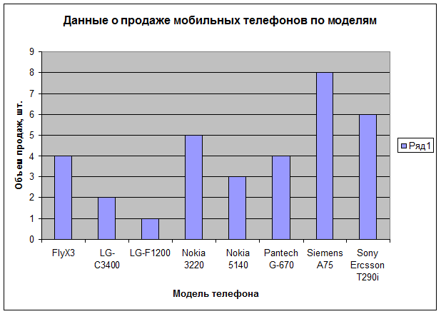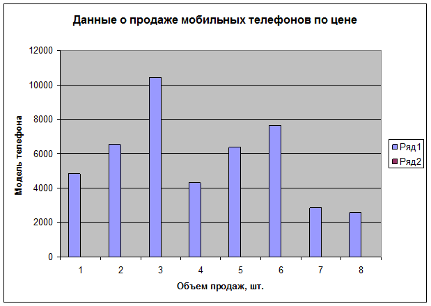 15. Представим графические данные о продаже мобильных телефонов за текущий день.