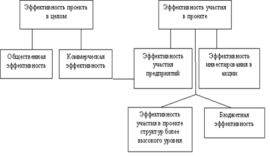 Эффективность участия в проекте включает и такие виды, как эффективность участия в проекте структур более высокого уровня (финансово-промышленных групп, холдинговых структур), бюджетная эффективность инвестиционного проекта (эффективность участия государства в проекте с точки зрения расходов и доходов бюджетов всех уровней).