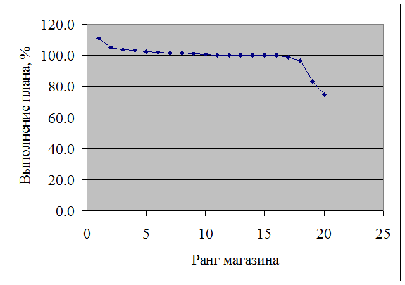 Составляем ранжированный ряд магазинов по степени выполнения плана товарооборота за квартал (упорядочиваем по убыванию процента выполнения плана). Выделяем три группы магазинов: перевыполнивших план, выполнивших план и не выполнивших план. В каждой группе подсчитаем число магазинов, товарооборот по плану и фактически, выполнение товарооборота в среднем по группе.