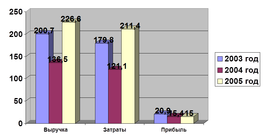 Динамика прибыли в структуре затрат ЗАО «Электрокомпектсервис» за 2003-2005 гг